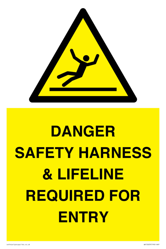DANGER SAFETY HARNESS & LIFELINE REQUIRED FOR ENTRY Sign