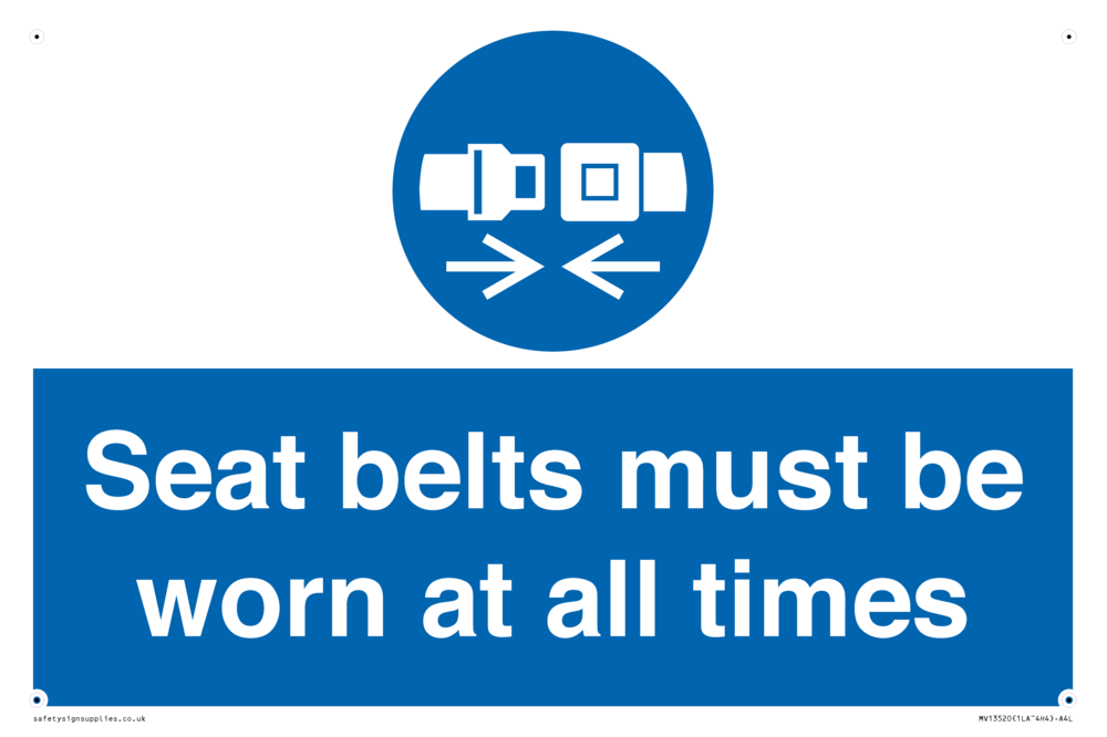 Seat belts must be worn at all times Sign