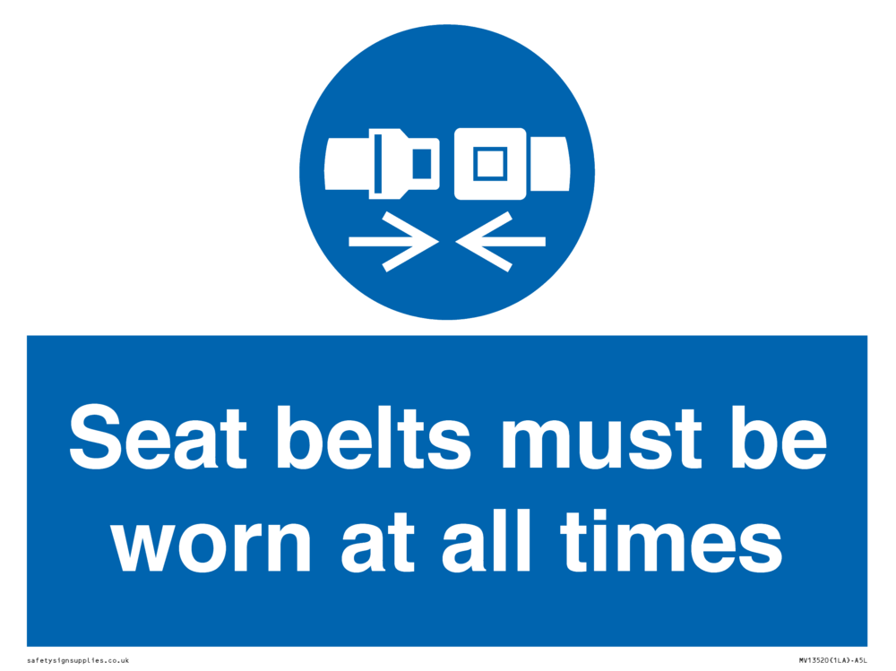 Seat belts must be worn at all times Sign
