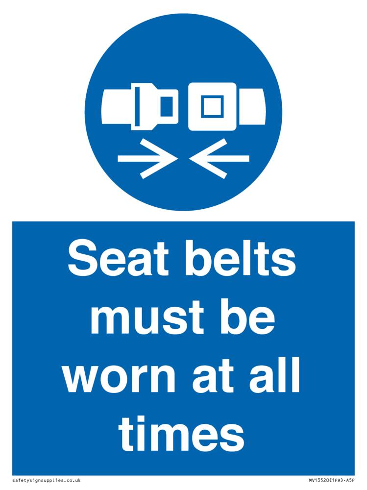 Seat belts must be worn at all times Sign