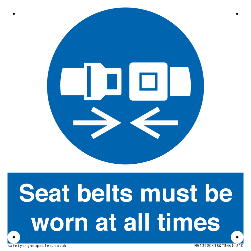 Seat belts must be worn at all times Sign