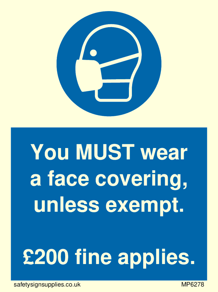 You MUST wear a face covering, unless exempt. £200 fine applies.