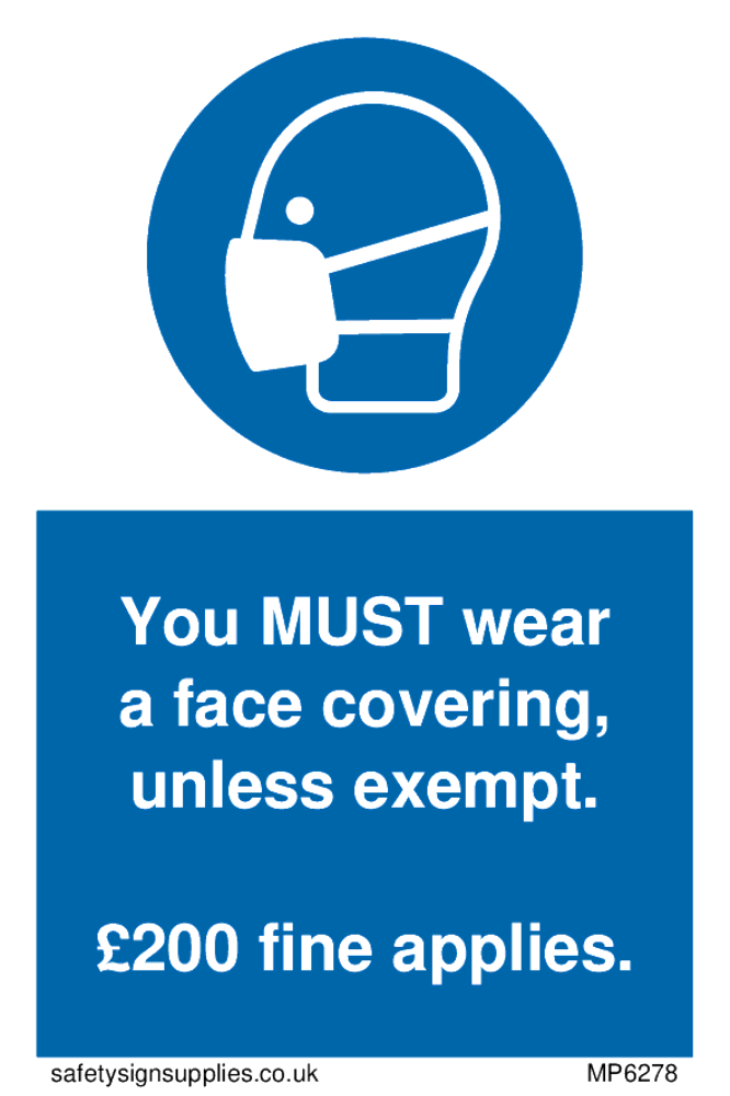 Sign Text: You MUST wear a face covering, unless exempt. £200 fine applies.