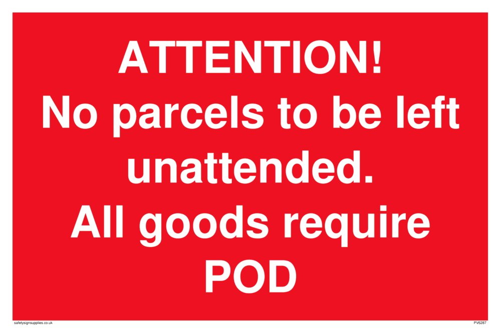 ATTENTION! No parcels to be left unattended All goods require POD Sign