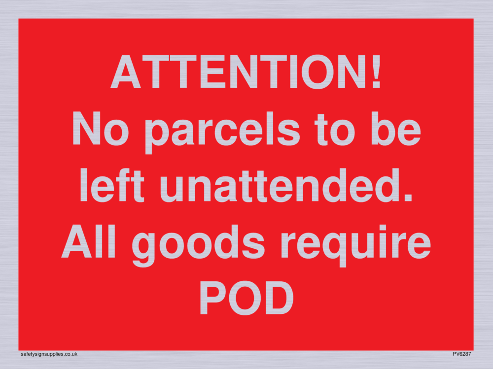 ATTENTION! No parcels to be left unattended All goods require POD Sign