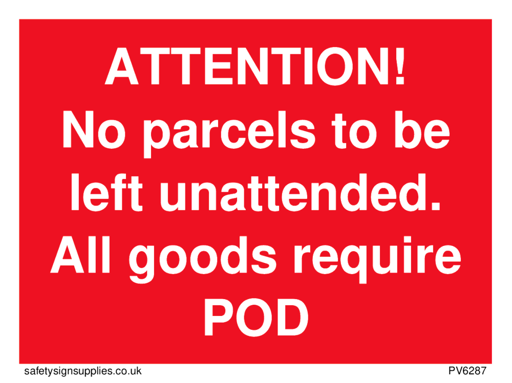 ATTENTION! No parcels to be left unattended All goods require POD Sign