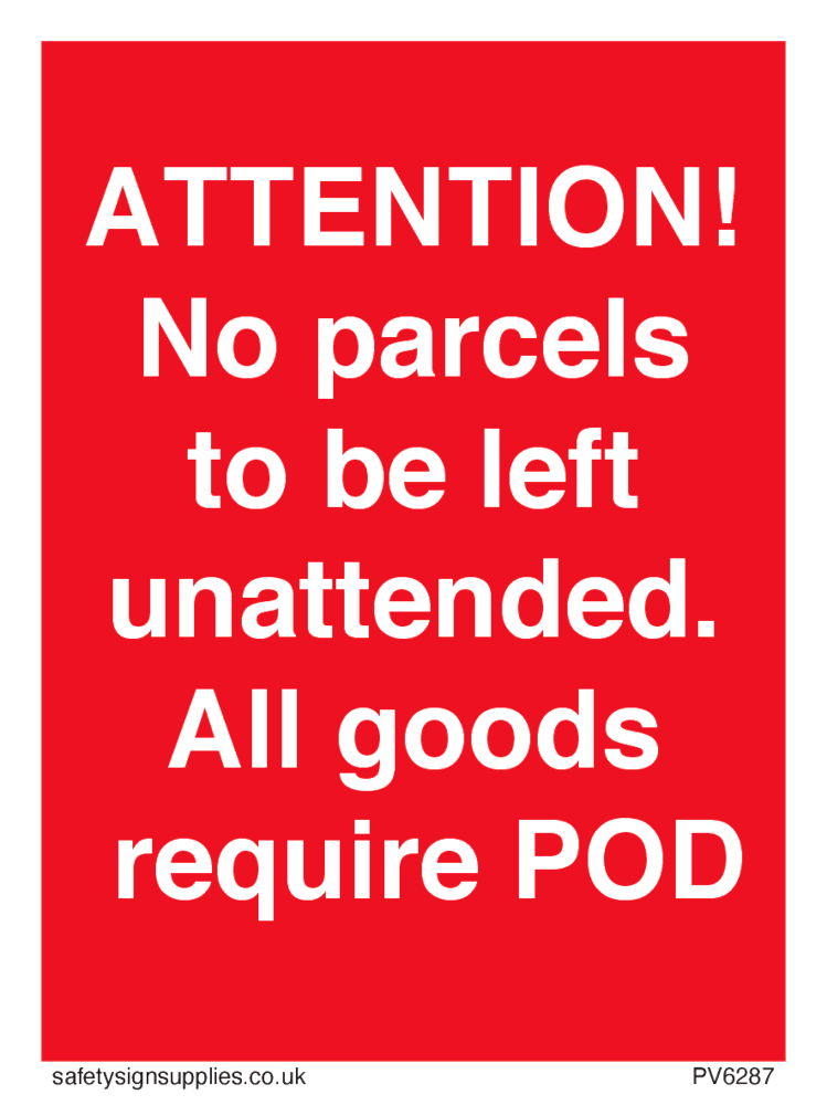 ATTENTION! No parcels to be left unattended All goods require POD Sign