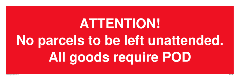 ATTENTION! No parcels to be left unattended All goods require POD Sign