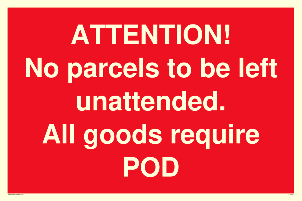 ATTENTION! No parcels to be left unattended All goods require POD Sign