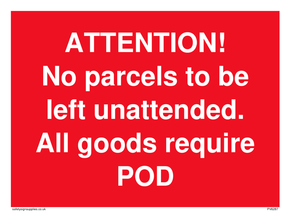 ATTENTION! No parcels to be left unattended All goods require POD Sign