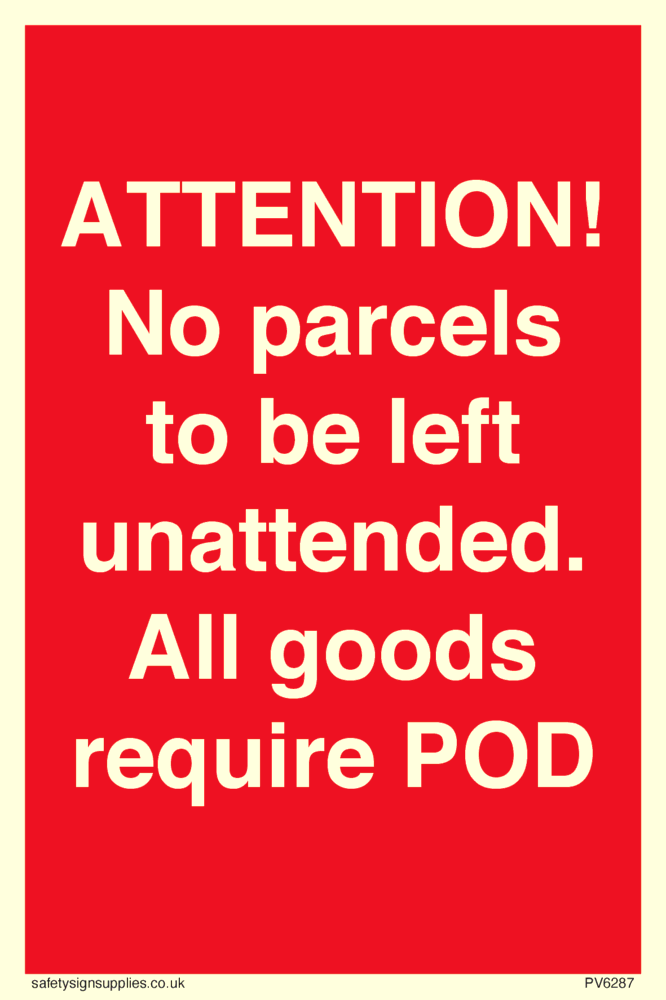 ATTENTION! No parcels to be left unattended All goods require POD Sign
