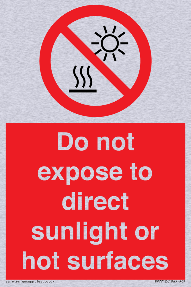 Do not expose to direct sunlight or hot surfaces Sign