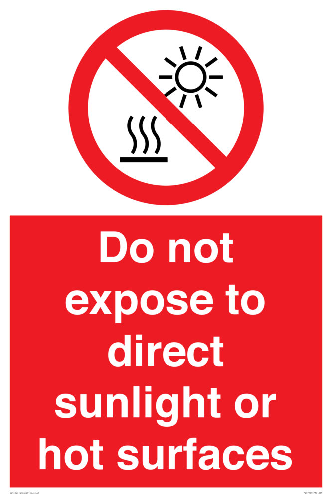 Do not expose to direct sunlight or hot surfaces Sign
