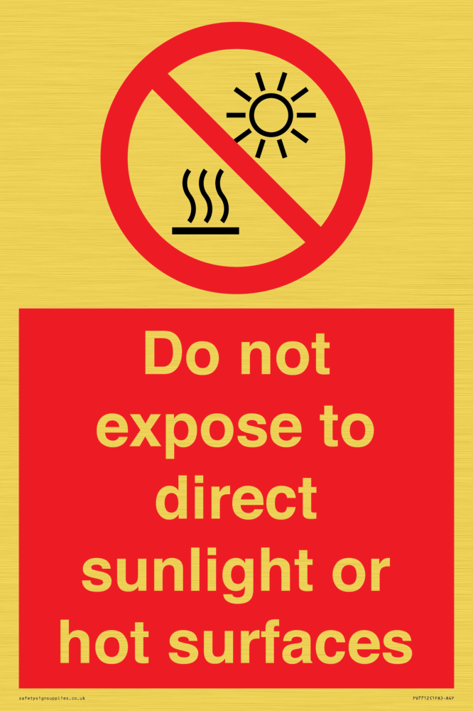 Do not expose to direct sunlight or hot surfaces Sign