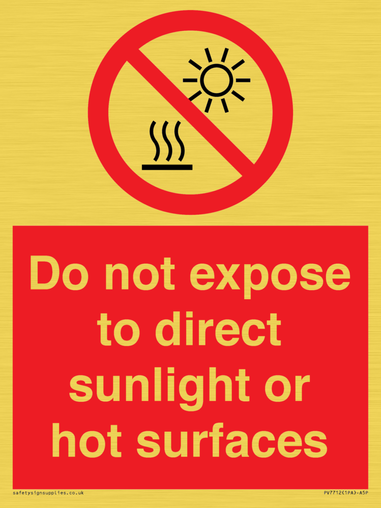 Do not expose to direct sunlight or hot surfaces Sign