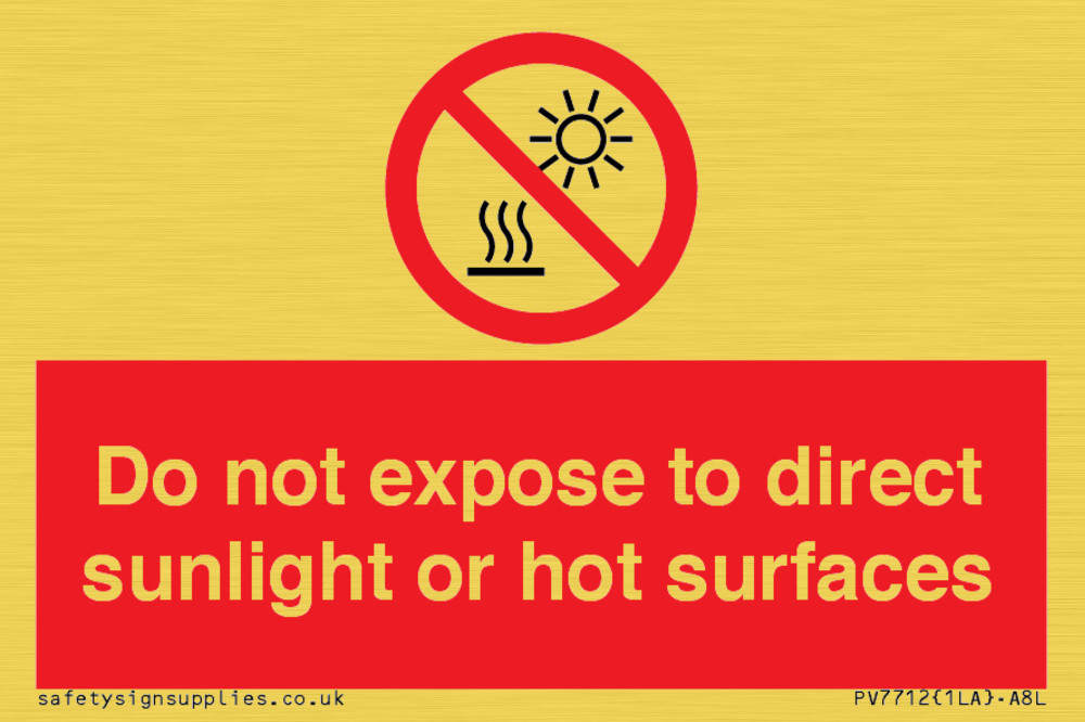 Do not expose to direct sunlight or hot surfaces Sign