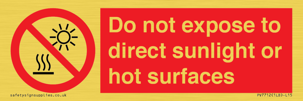 Do not expose to direct sunlight or hot surfaces Sign