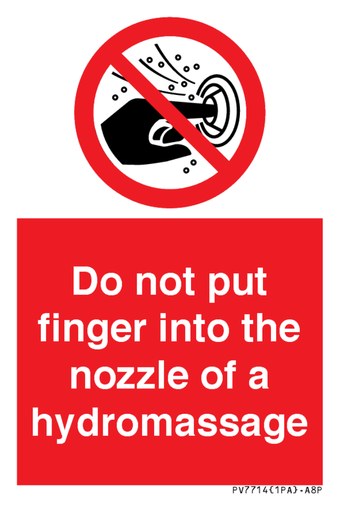 Do not put finger into the nozzle of a hydromassage Sign