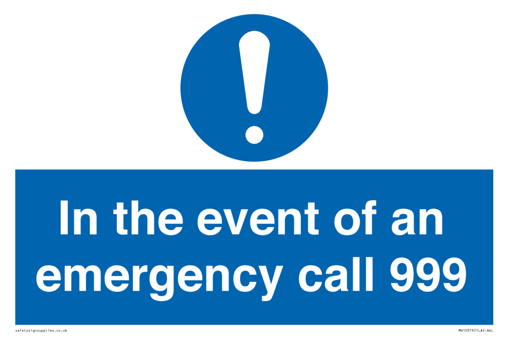 In the event of an emergency call 999 Sign