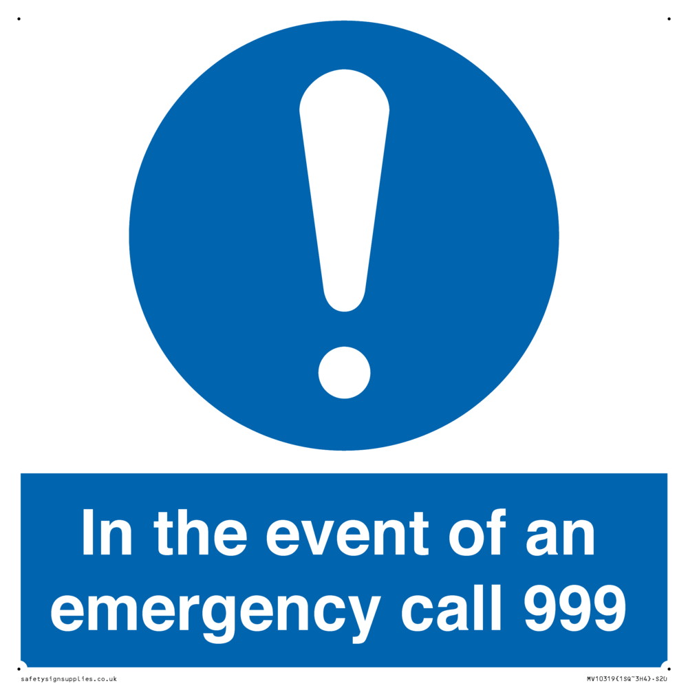 In the event of an emergency call 999 Sign