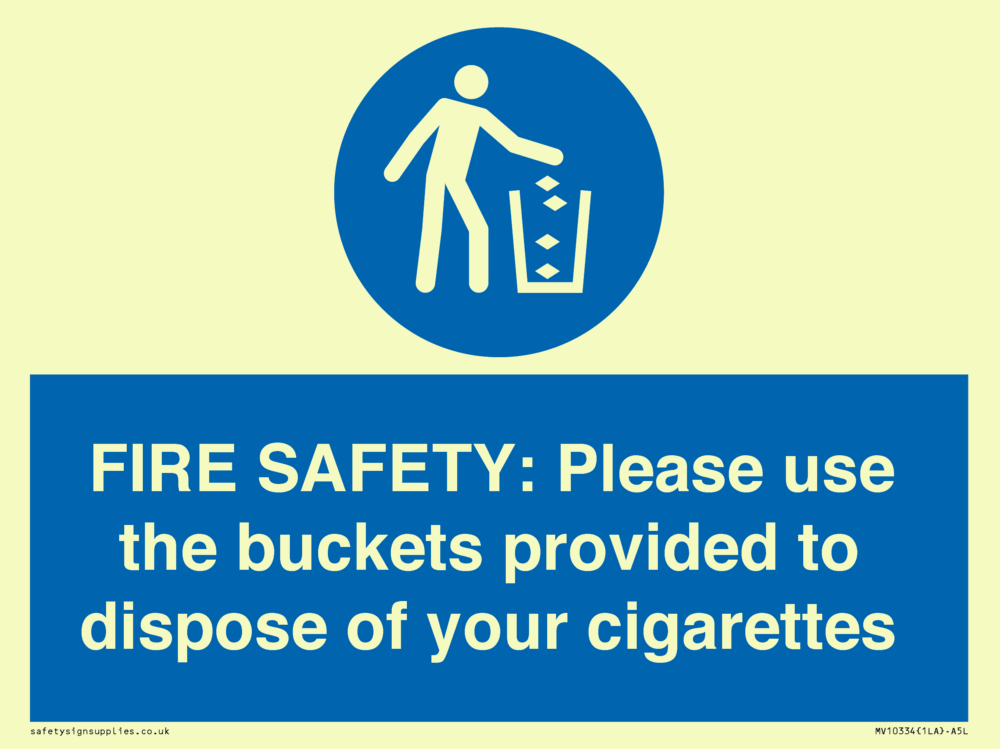 FIRE SAFETY: Please use the buckets provided to dispose of your cigarettes