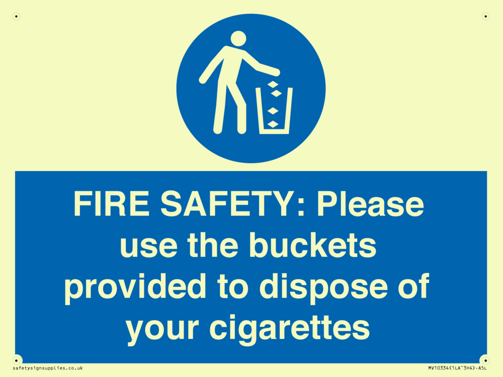 FIRE SAFETY: Please use the buckets provided to dispose of your cigarettes