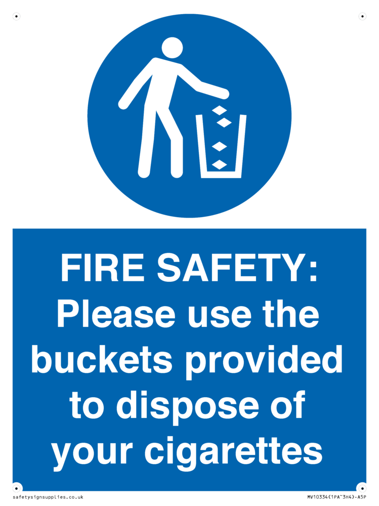 FIRE SAFETY: Please use the buckets provided to dispose of your cigarettes
