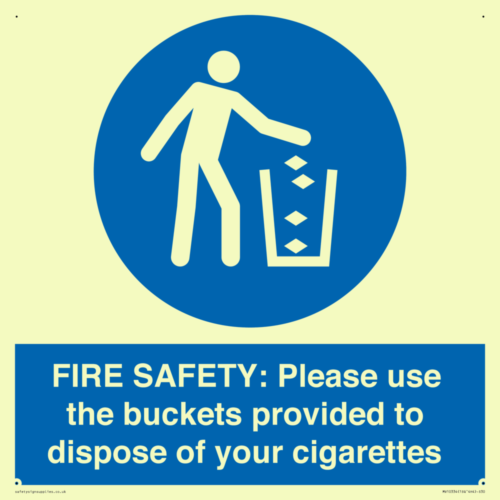 FIRE SAFETY: Please use the buckets provided to dispose of your cigarettes