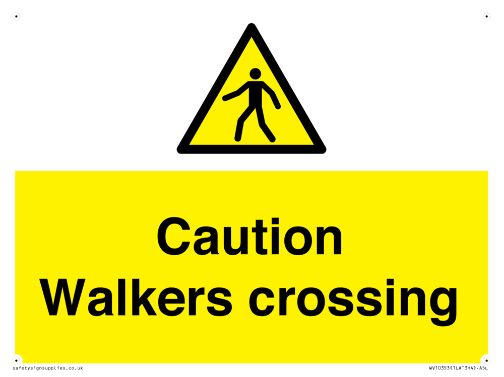 Sign Text: Caution walkers crossing
