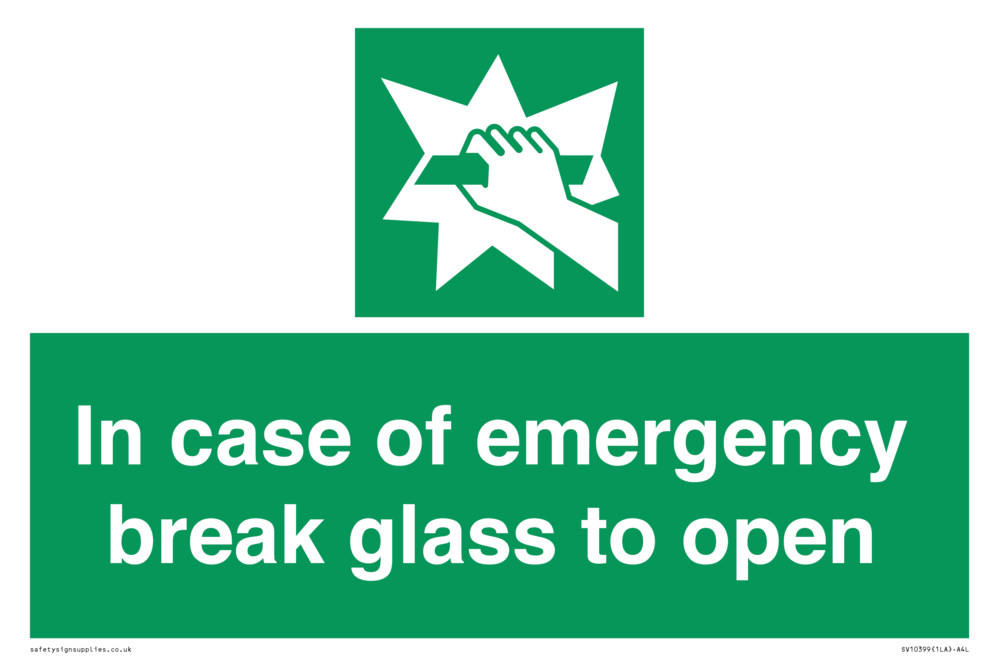 In case of emergency break glass to open Sign