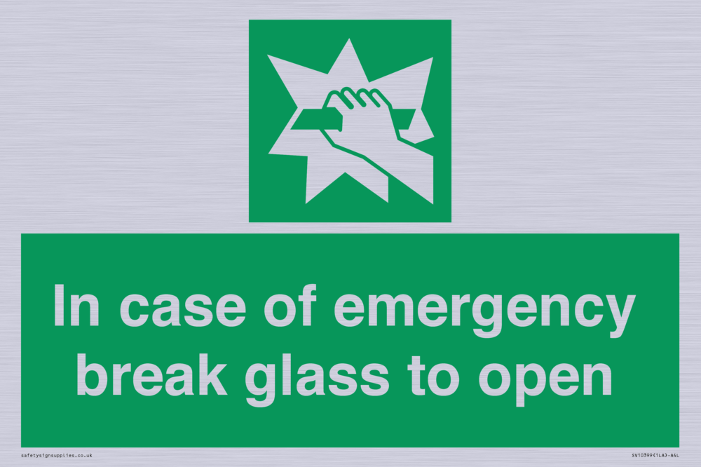 In case of emergency break glass to open Sign