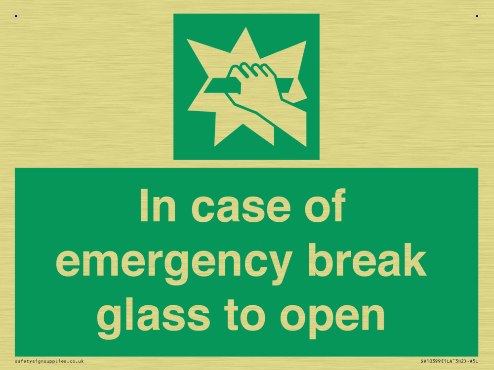 In case of emergency break glass to open Sign