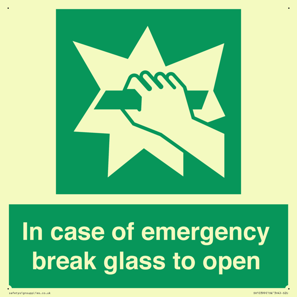In case of emergency break glass to open Sign