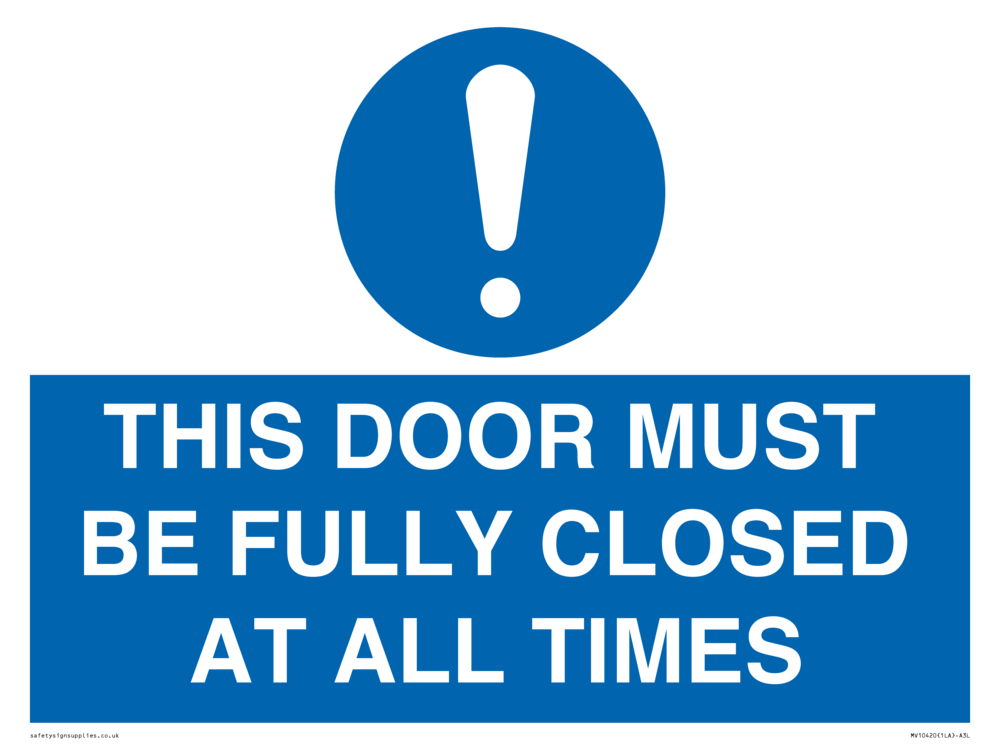 THIS DOOR MUST BE FULLY CLOSED AT ALL TIMES Sign
