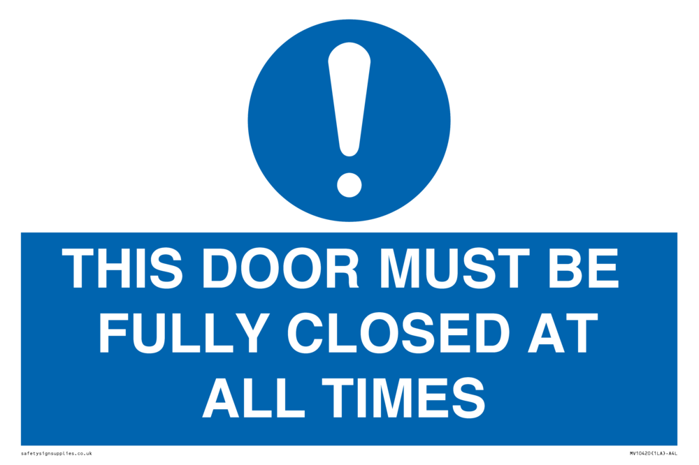 THIS DOOR MUST BE FULLY CLOSED AT ALL TIMES Sign