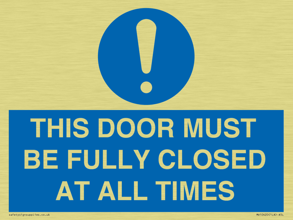 THIS DOOR MUST BE FULLY CLOSED AT ALL TIMES Sign