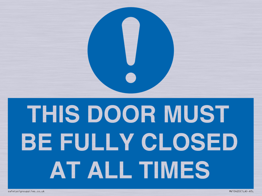THIS DOOR MUST BE FULLY CLOSED AT ALL TIMES Sign