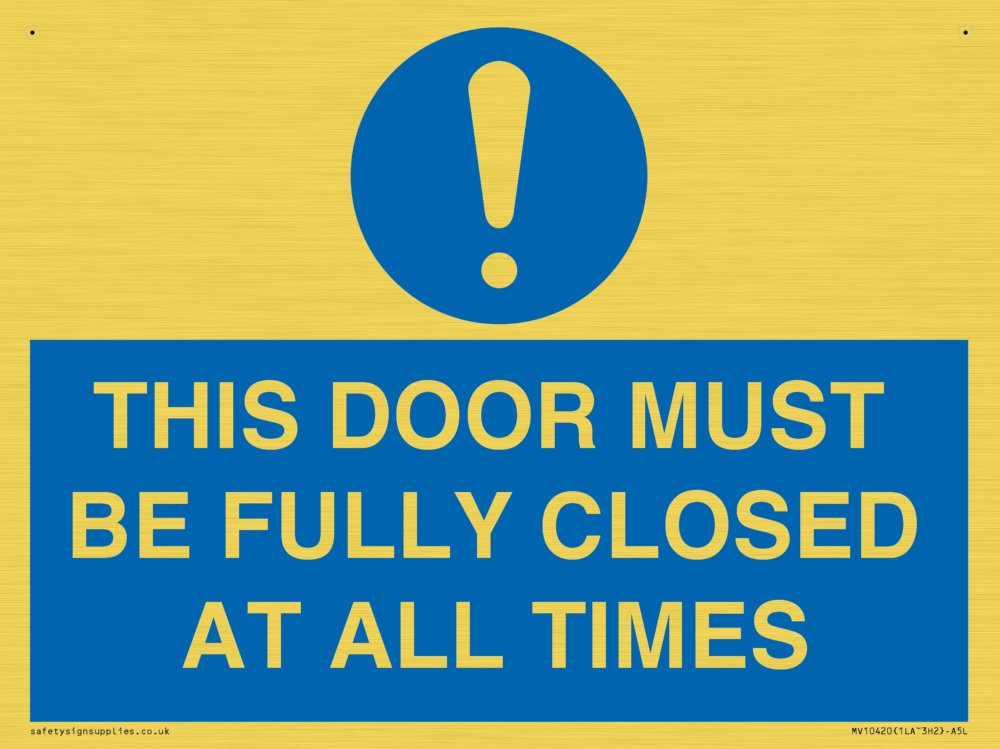 THIS DOOR MUST BE FULLY CLOSED AT ALL TIMES Sign