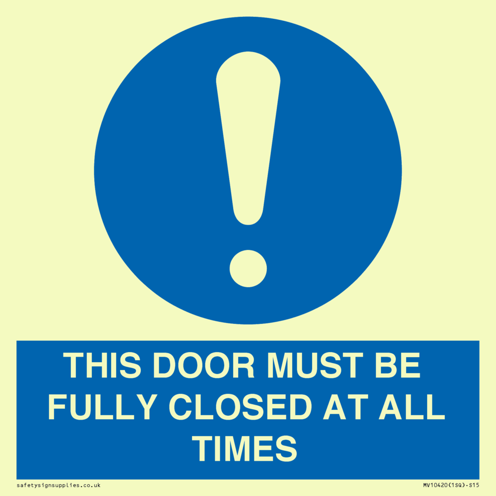 THIS DOOR MUST BE FULLY CLOSED AT ALL TIMES Sign