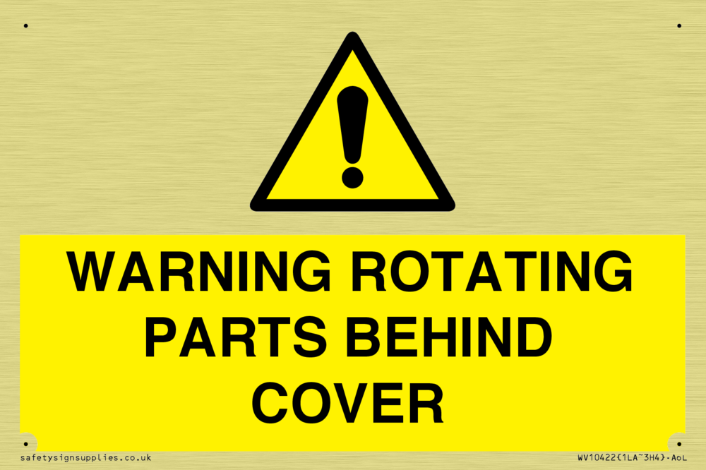 WARNING ROTATING PARTS BEHIND COVER Sign
