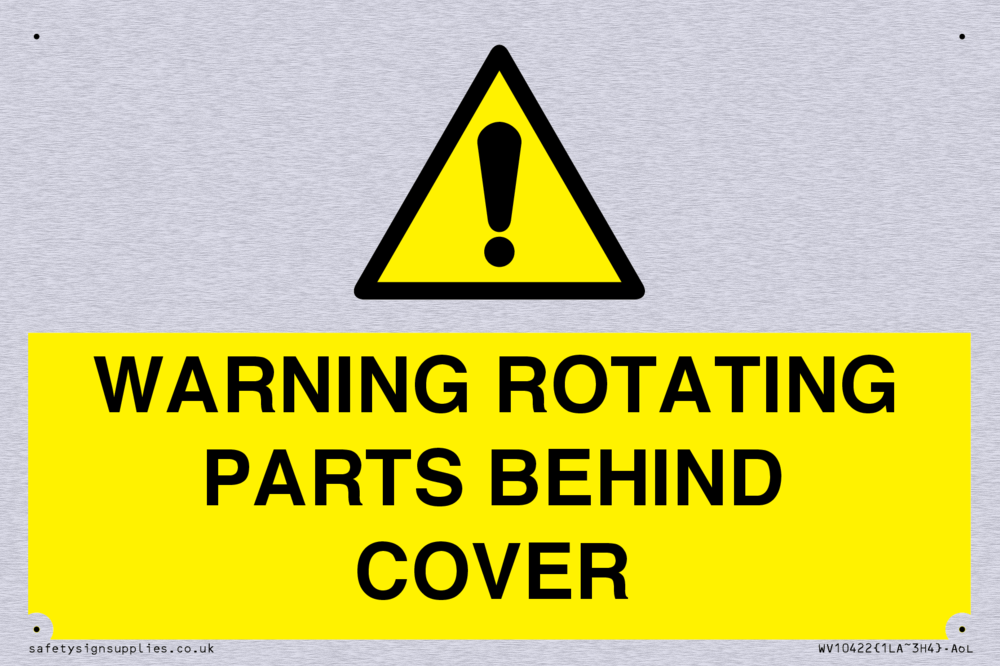 WARNING ROTATING PARTS BEHIND COVER Sign