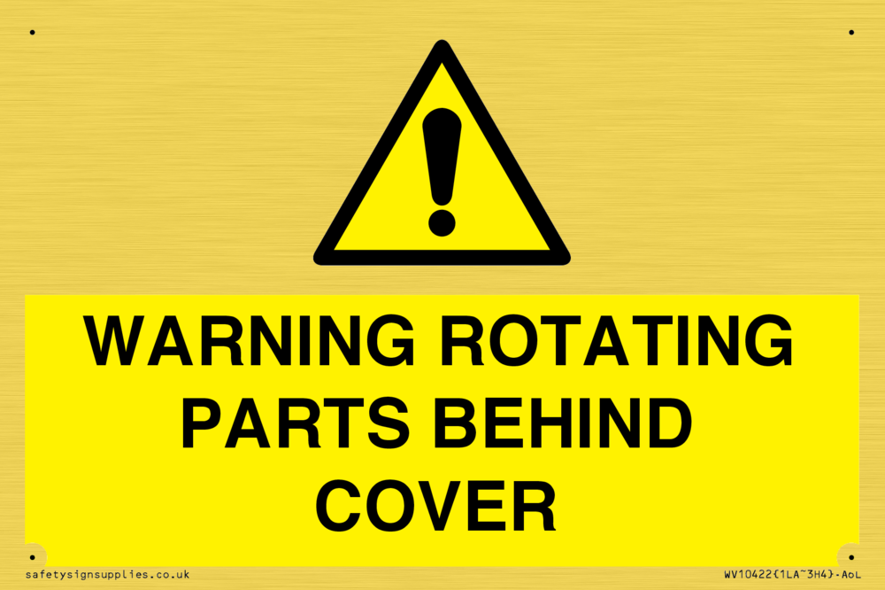 WARNING ROTATING PARTS BEHIND COVER Sign