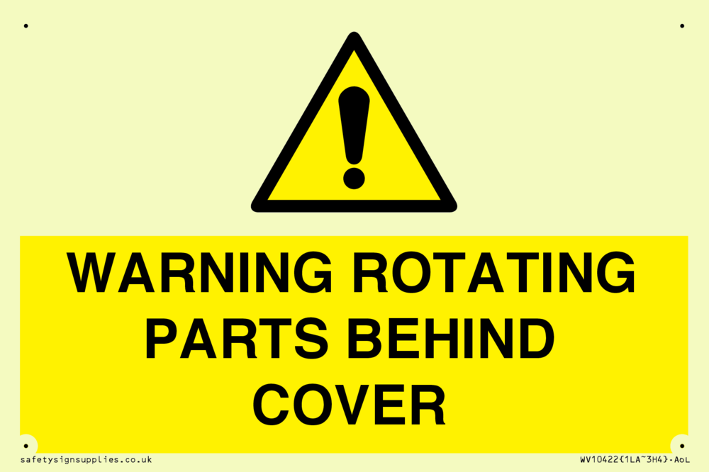 WARNING ROTATING PARTS BEHIND COVER Sign