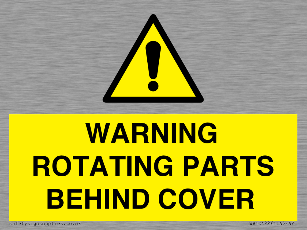 WARNING ROTATING PARTS BEHIND COVER Sign