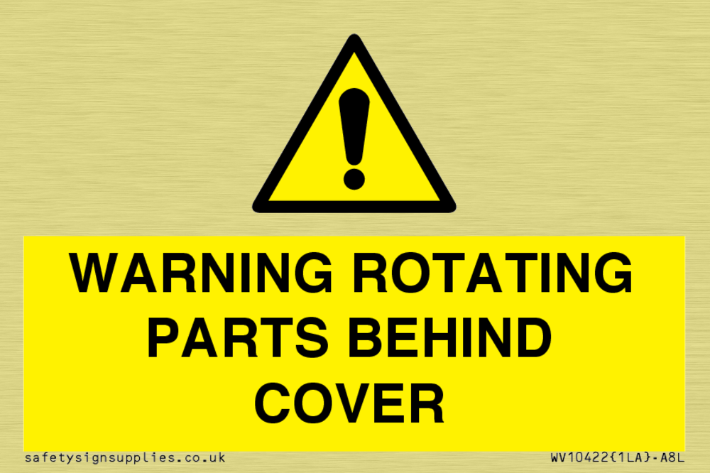 WARNING ROTATING PARTS BEHIND COVER Sign