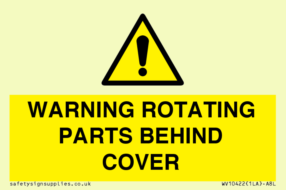 WARNING ROTATING PARTS BEHIND COVER Sign