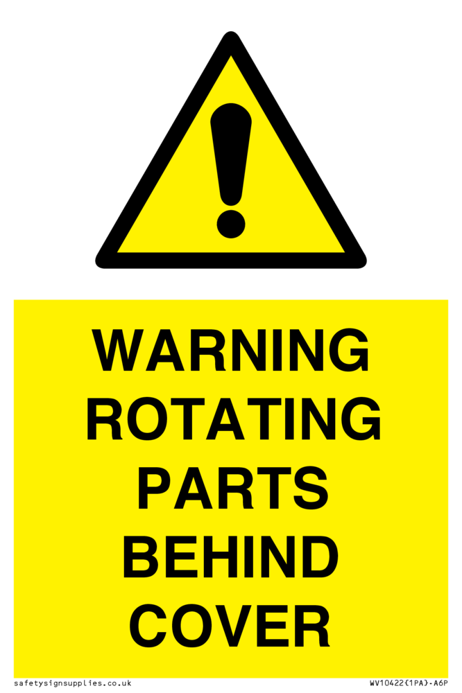 WARNING ROTATING PARTS BEHIND COVER Sign