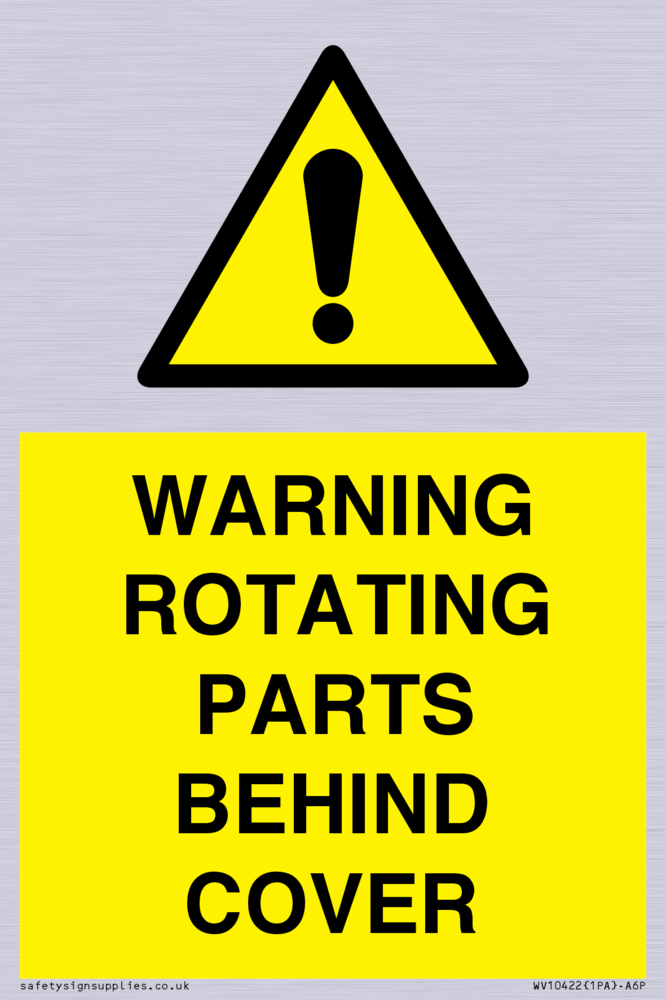 WARNING ROTATING PARTS BEHIND COVER Sign