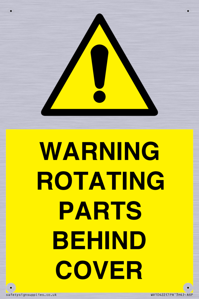 WARNING ROTATING PARTS BEHIND COVER Sign