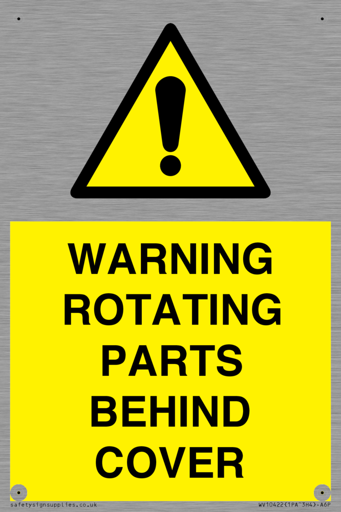 WARNING ROTATING PARTS BEHIND COVER Sign